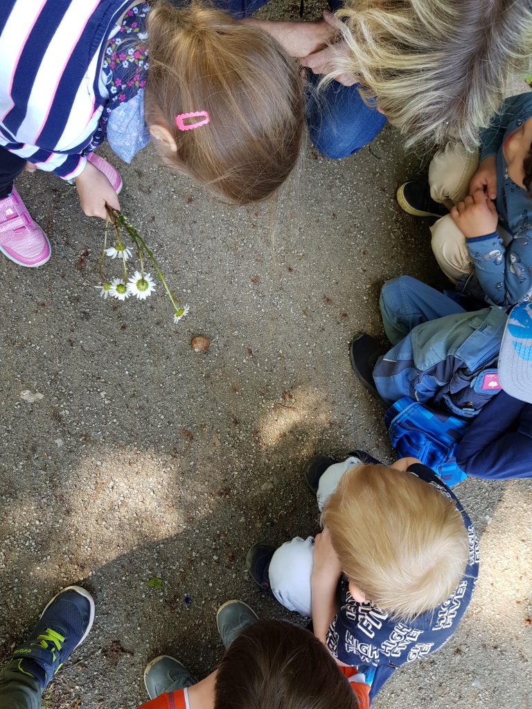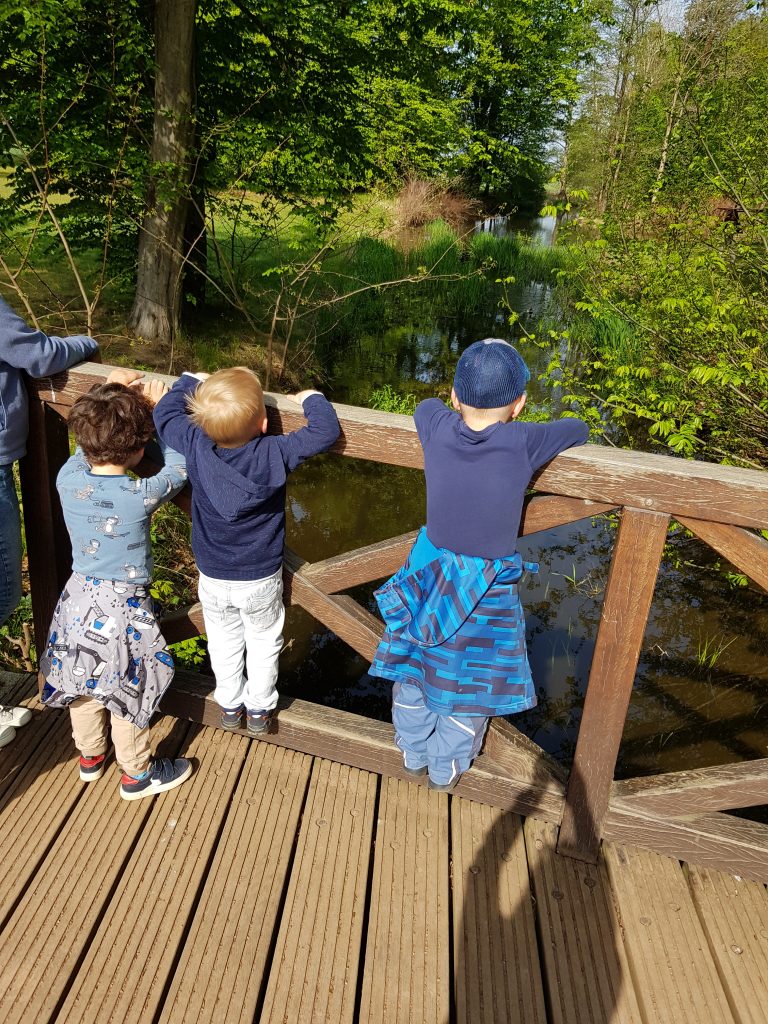 Durch unsere naturnahe Lage mit Wiesen, Feldern und Gartenflächen in unmittelbarer Umgebung erleben die Kinder täglich, wie vielfältig und lebendig ihre Umwelt ist. Sie beobachten den Wechsel der Jahreszeiten, spüren Wind und Sonne auf der Haut, hören Vogelstimmen und entdecken kleine Wunder am Wegesrand.